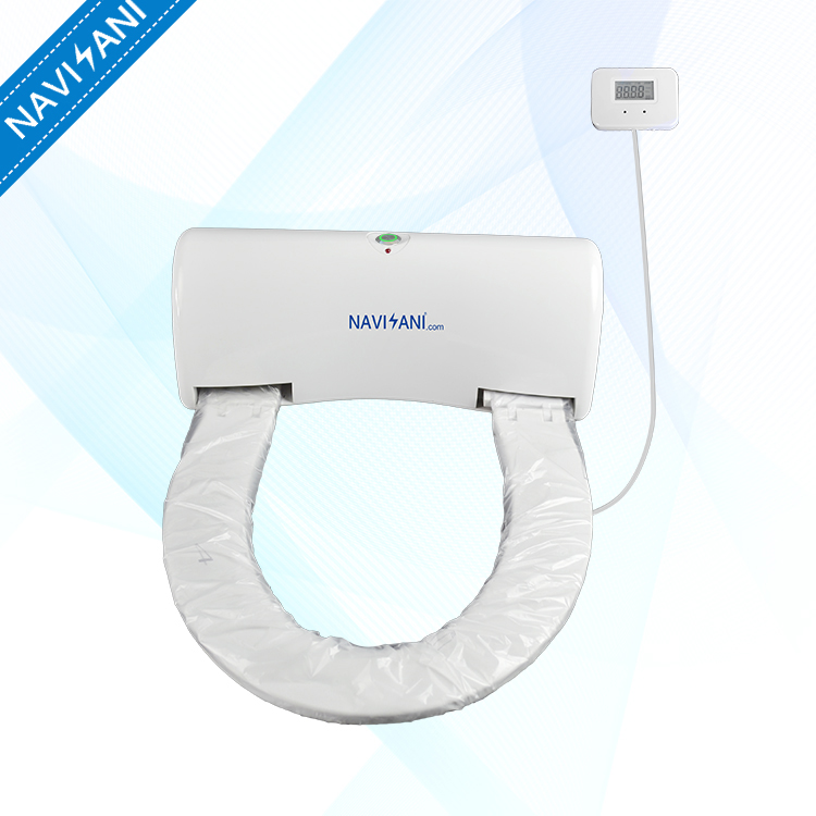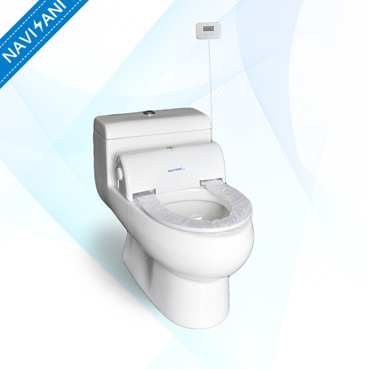 NAVISANI intelligent toilet cover is automatically controlled by a build-in microcomputer inside, the sanitary wrap will stop after turning exactly one round. The used film roll is destroyed by a cutter to ensure one time use.
